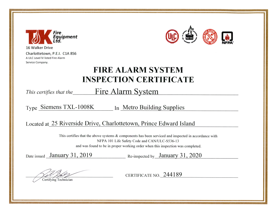 Fire Alarm Inspection – 01-31-2019