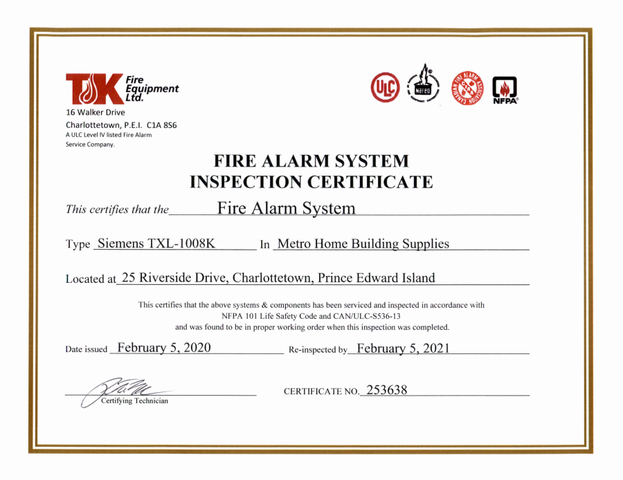 Fire Alarm Inspection – 02-05-2020