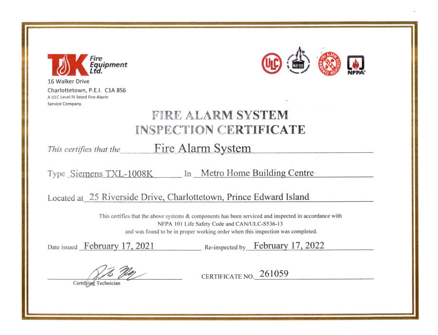 Fire Alarm Inspection – 02-17-2021