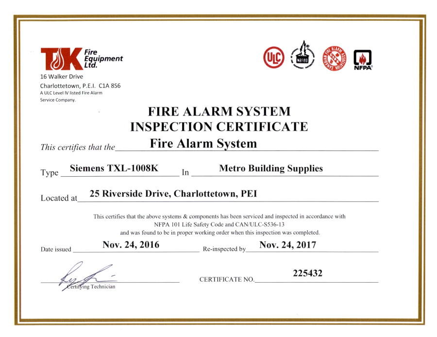 Fire Alarm Inspection – 11-24-2016