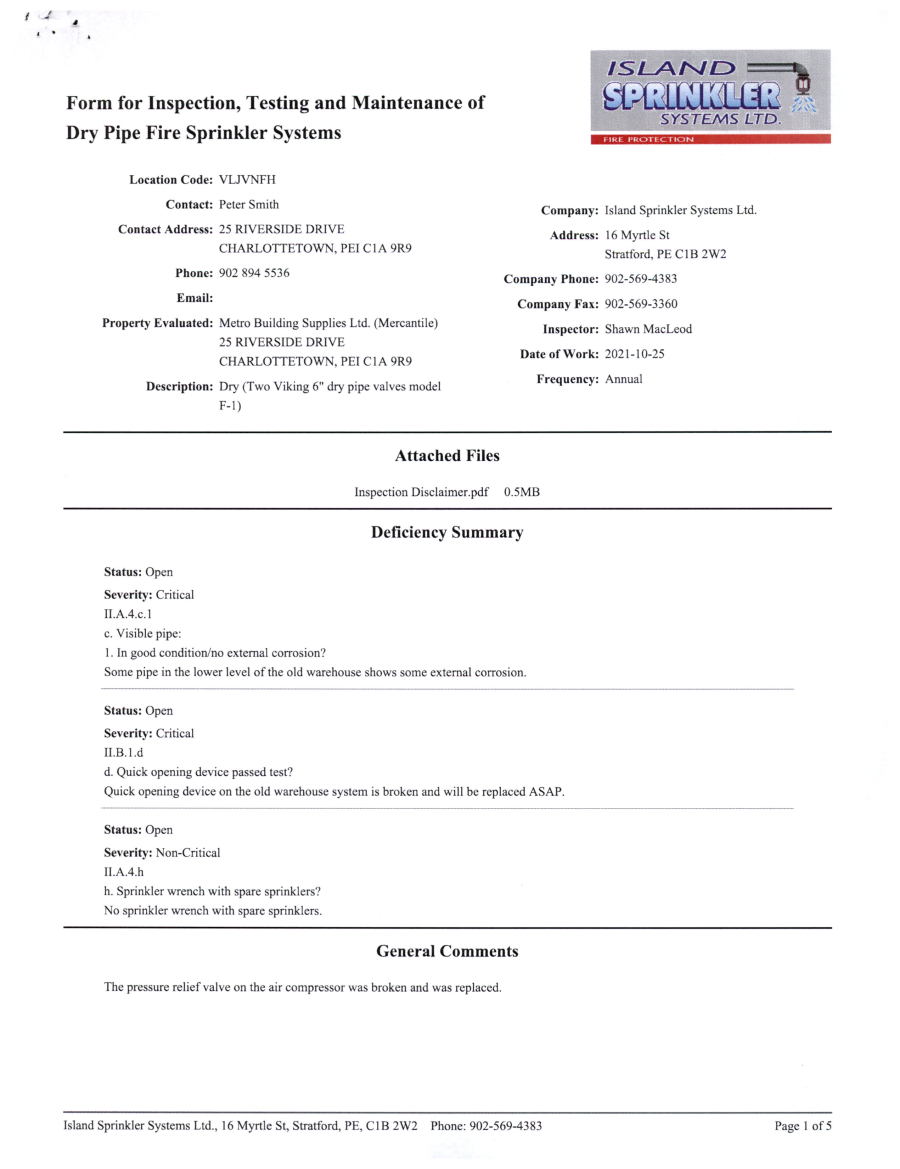 Sprinkler Inspection – 10-25-2021