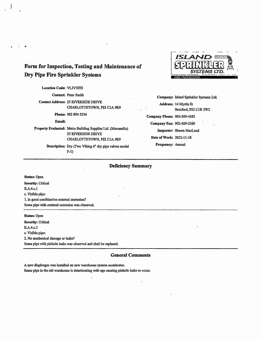 Sprinkler Inspection – 11-18-2022