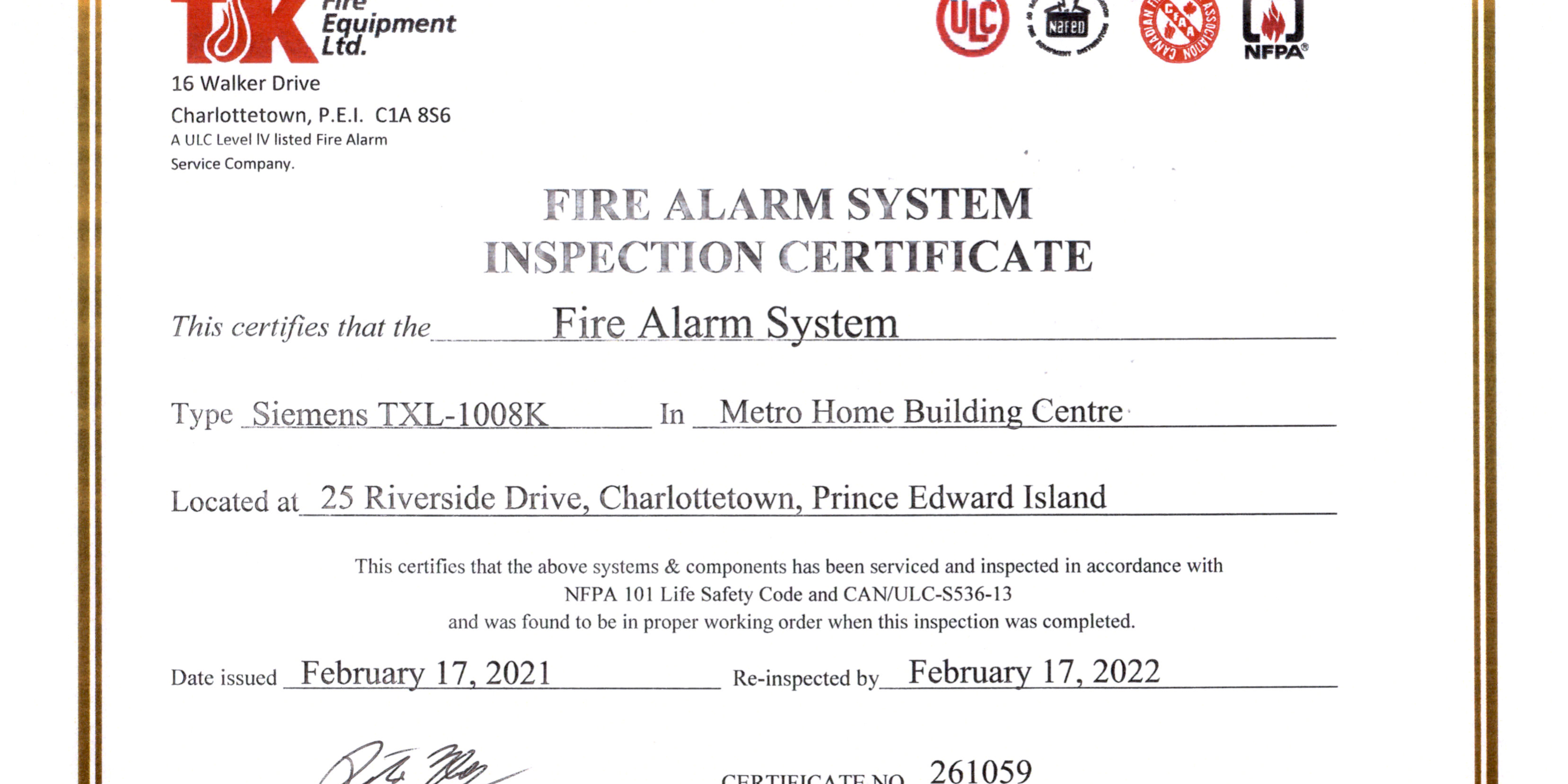 Fire Alarm Inspection – 02-17-2021